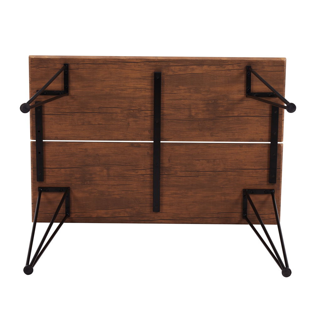 Desktop 18mm thick MDF+3D paper, the desktop is made of 2 pieces of 110 * 37cm, and the middle is connected by a black 15 * 30 * 1.2mm square iron pipe