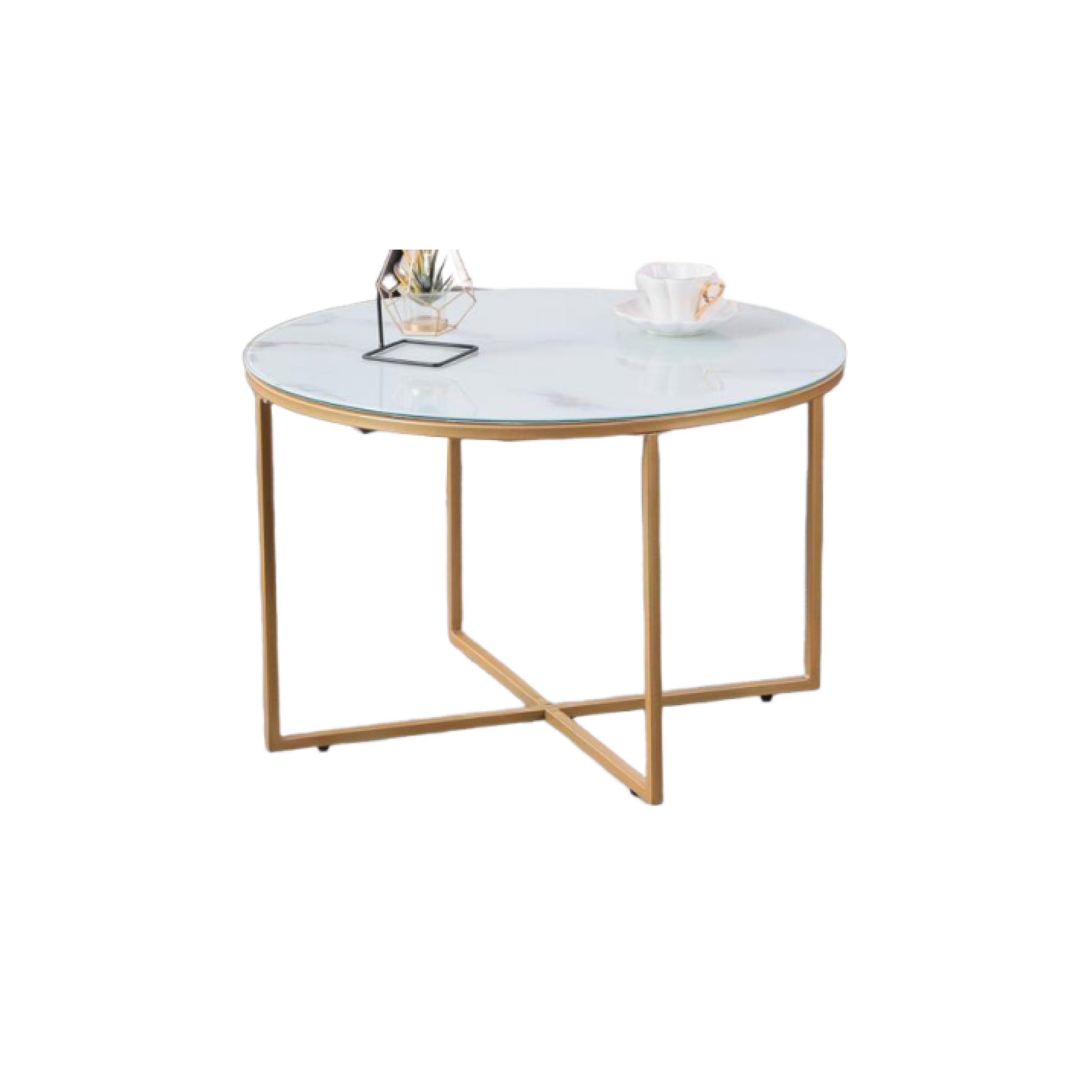 5mm tempred glass with white marble paper ,15*15 metal leg golden power coated