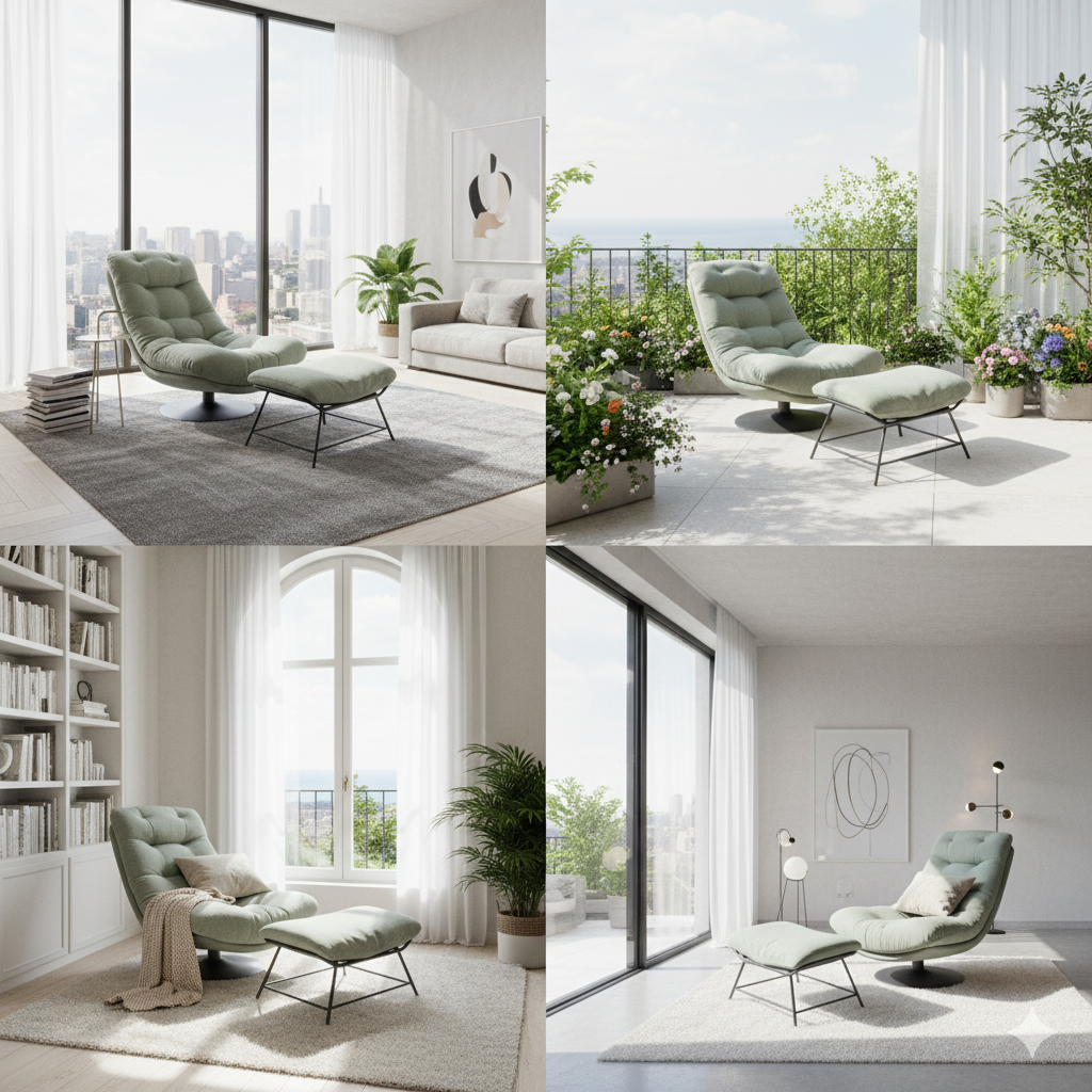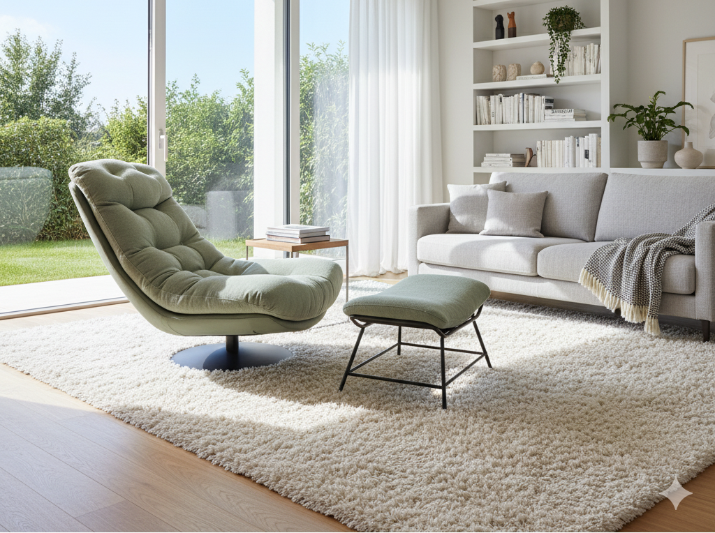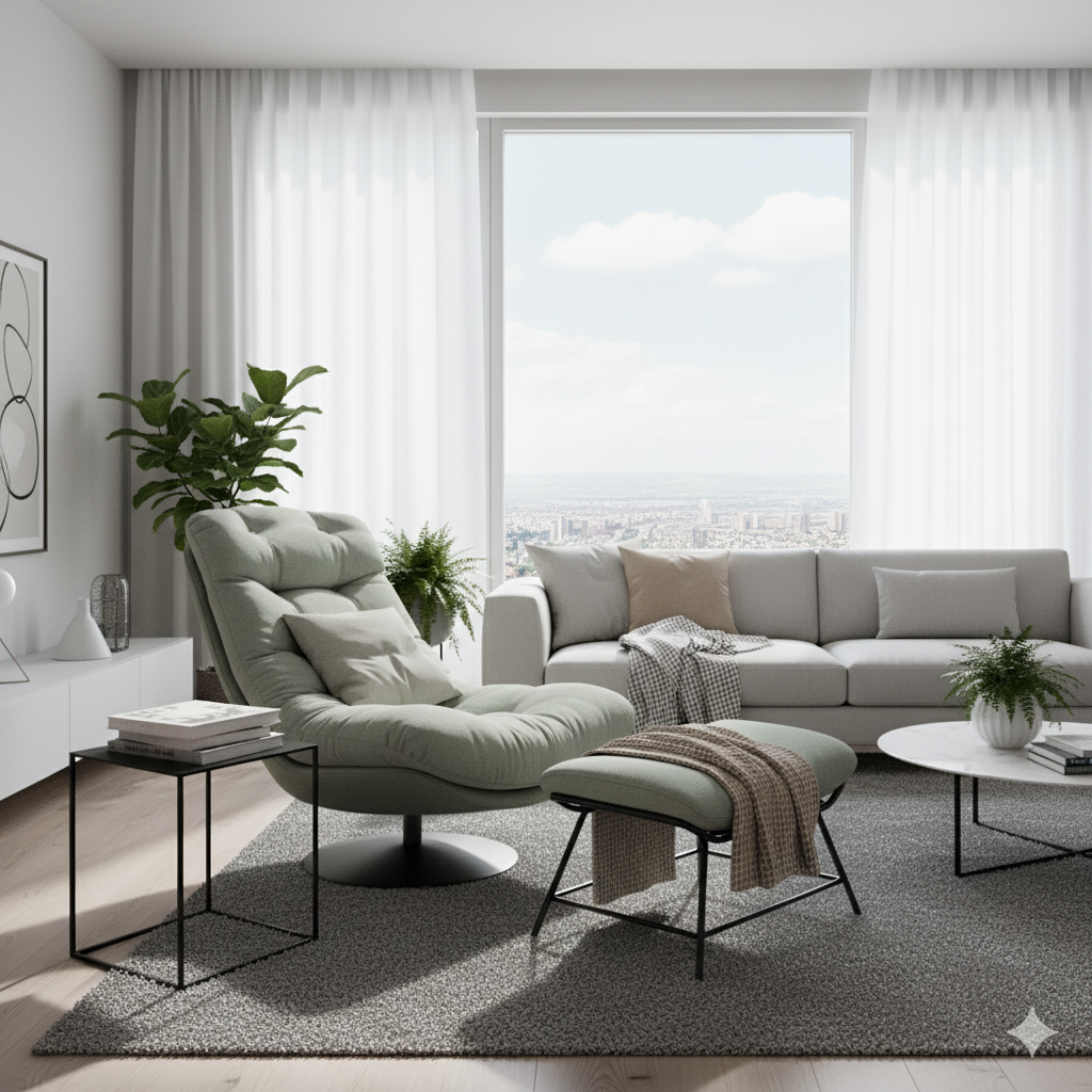 Armchair Green With Footstool LKX001ACSY | LEUKHOME