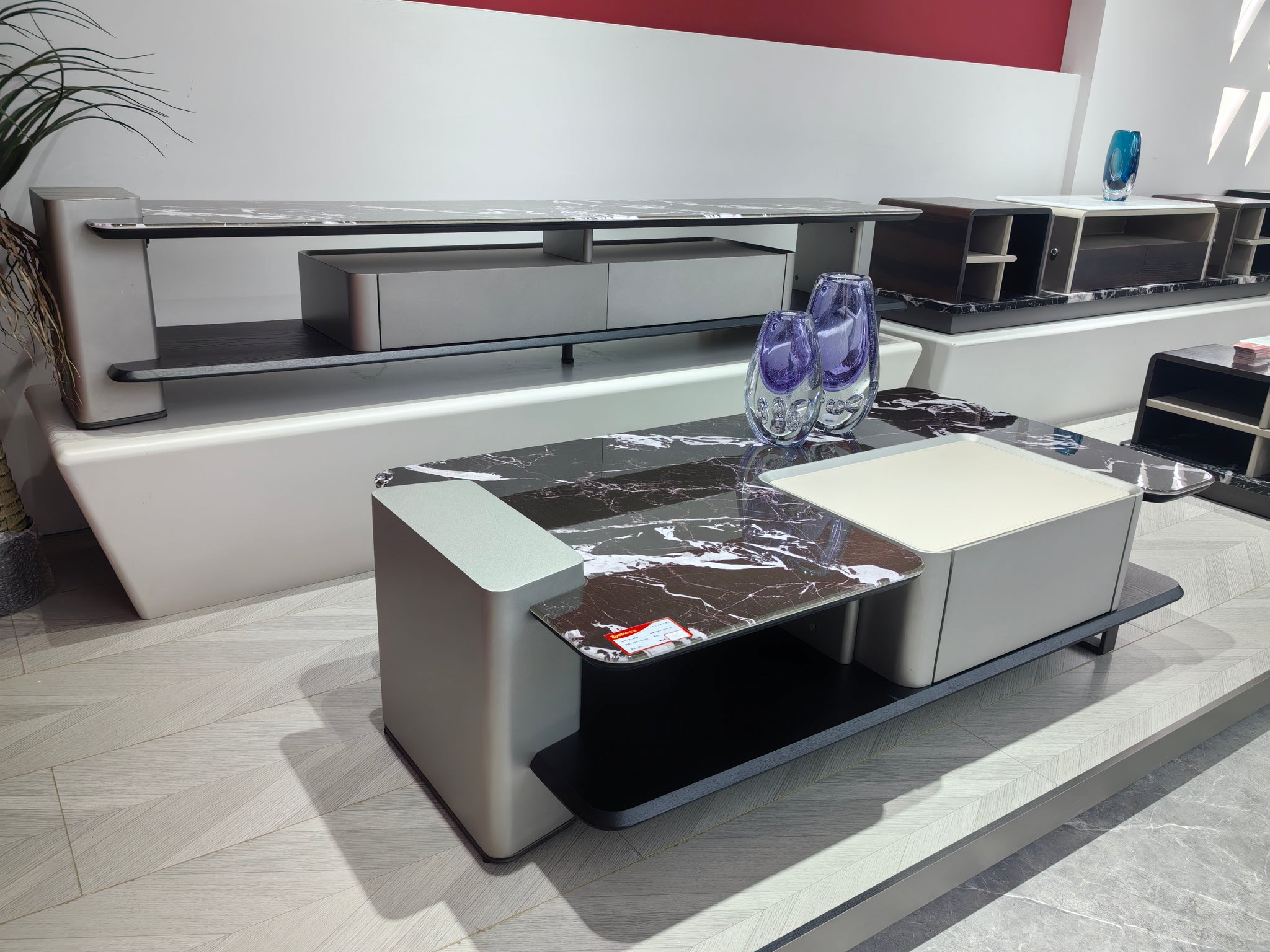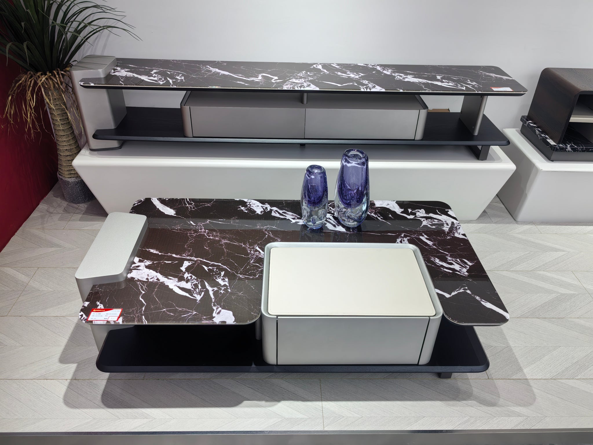 TV Stand Artificial Stone Saddle Leather Wood Veneer LKL018TSZZ | LEUKHOME