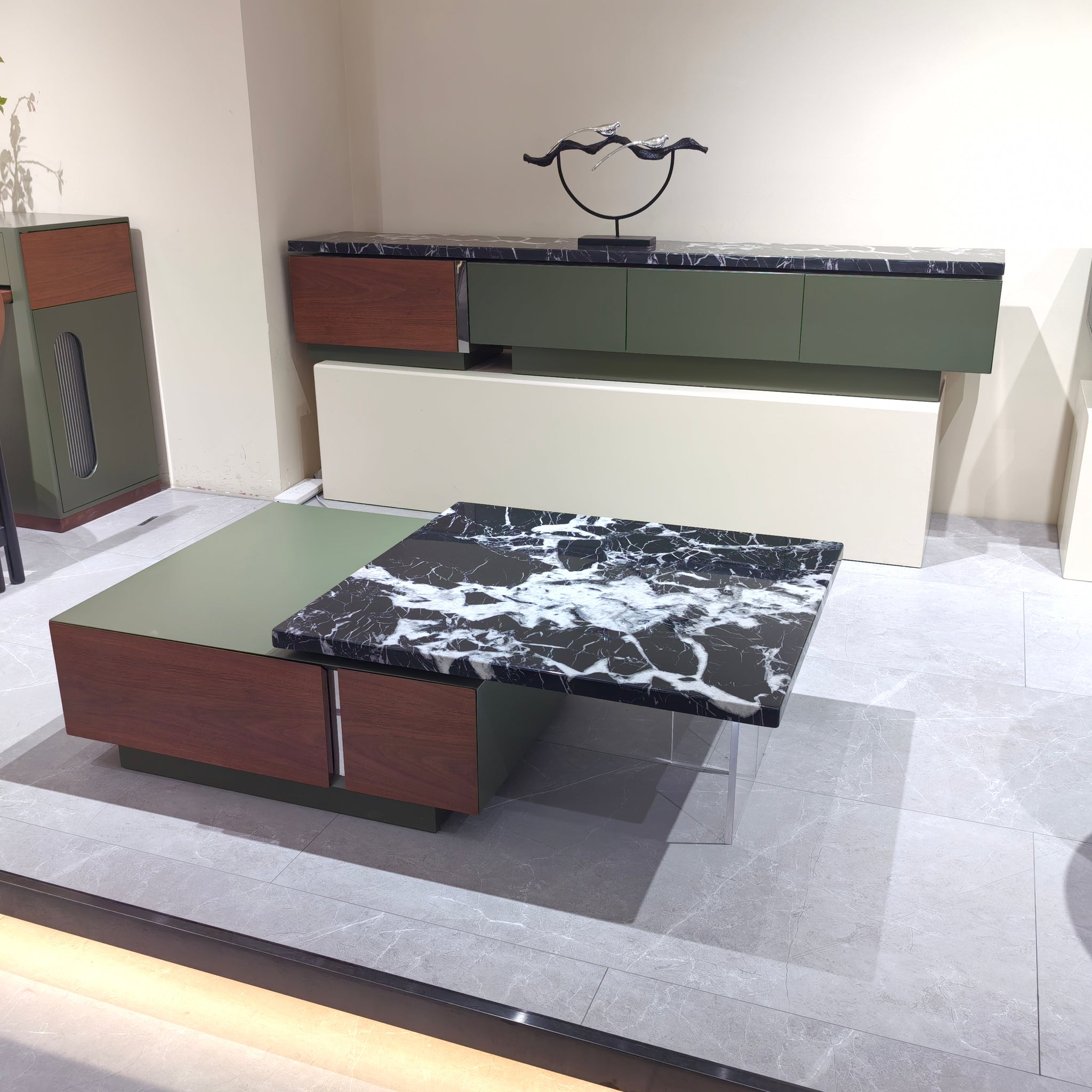 TV Stand Marble Baking Paint Wood Veneer LKL045TSAYG | LEUKHOME