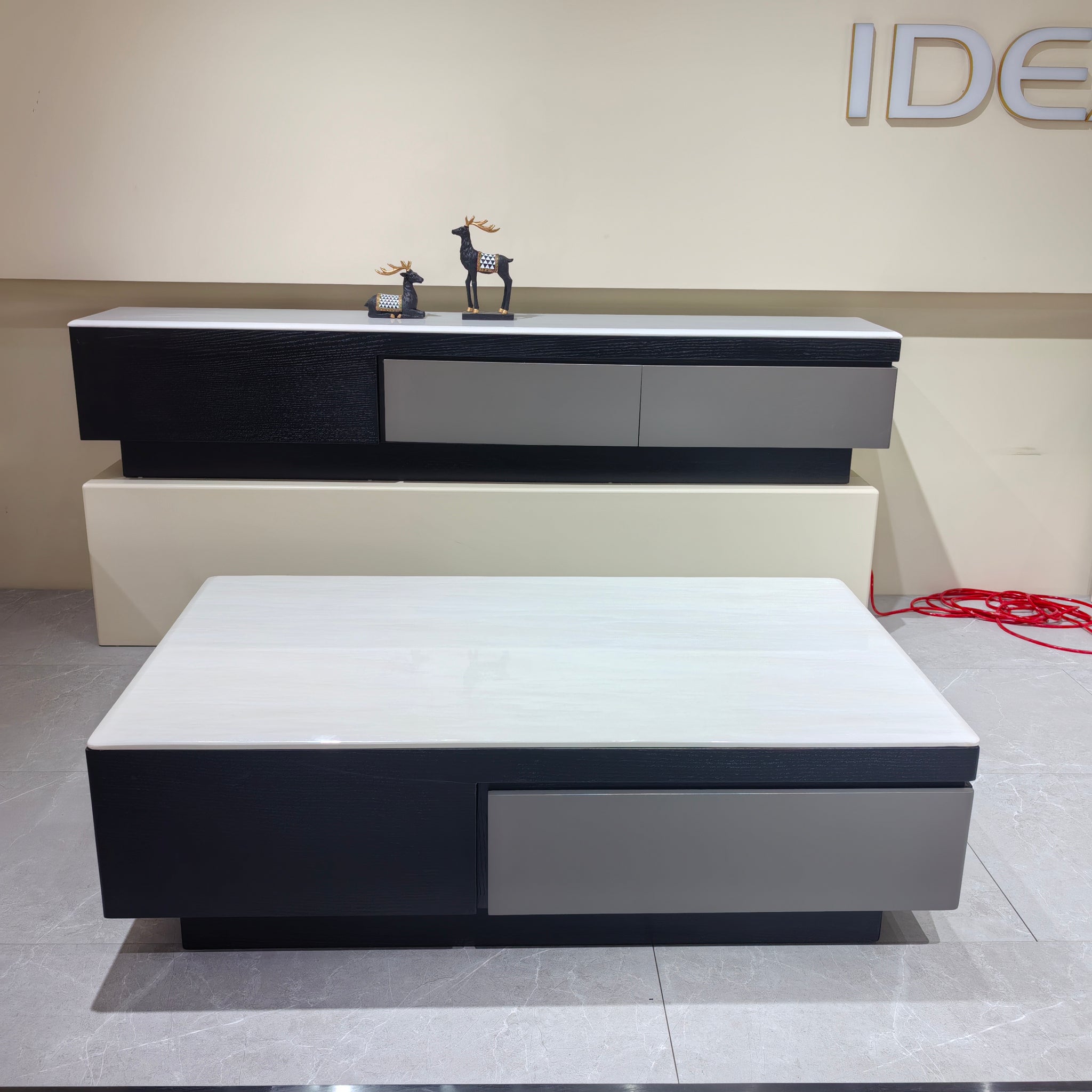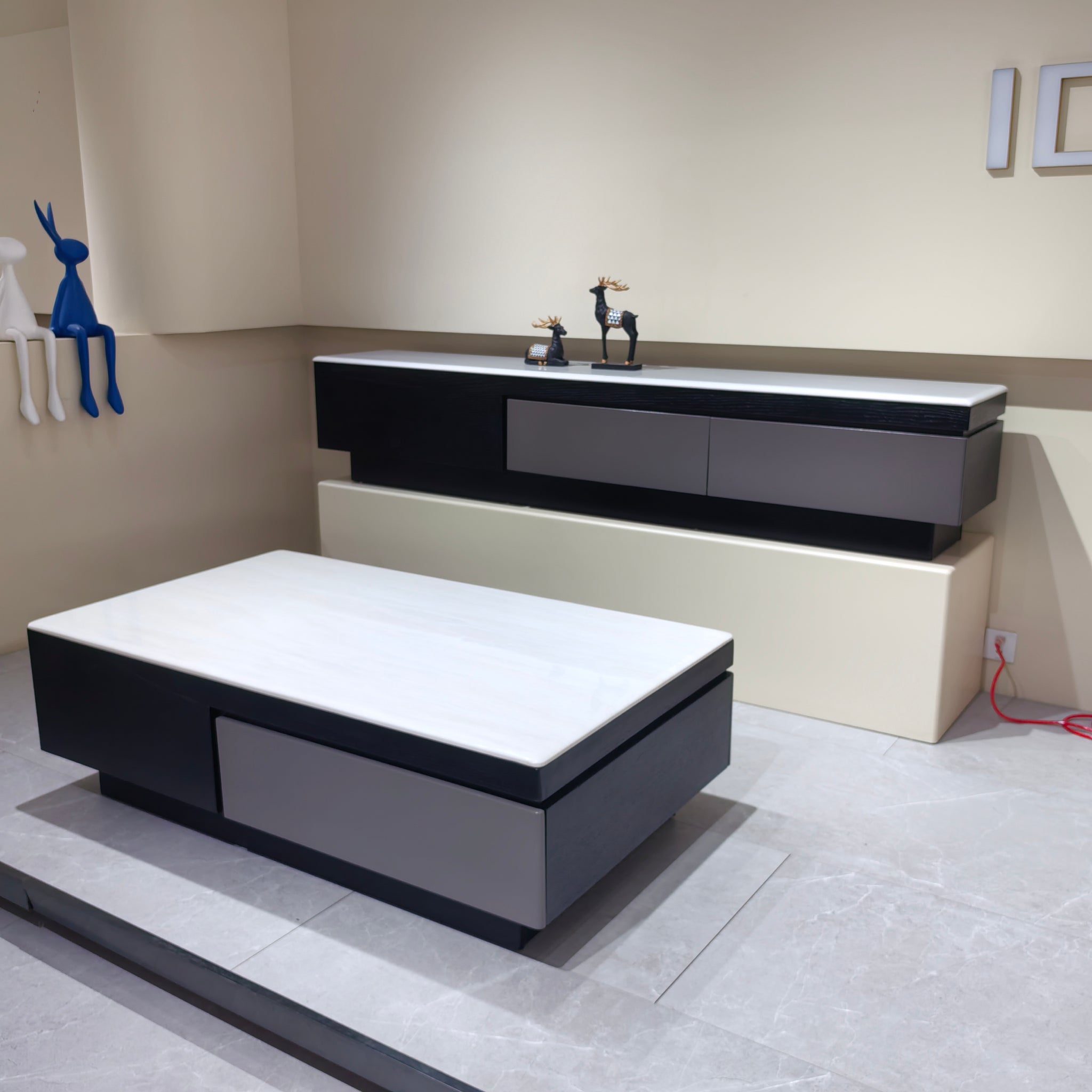 TV Stand Imitation Marble Baking Paint Wood Veneer LKL049TSAYG | LEUKHOME
