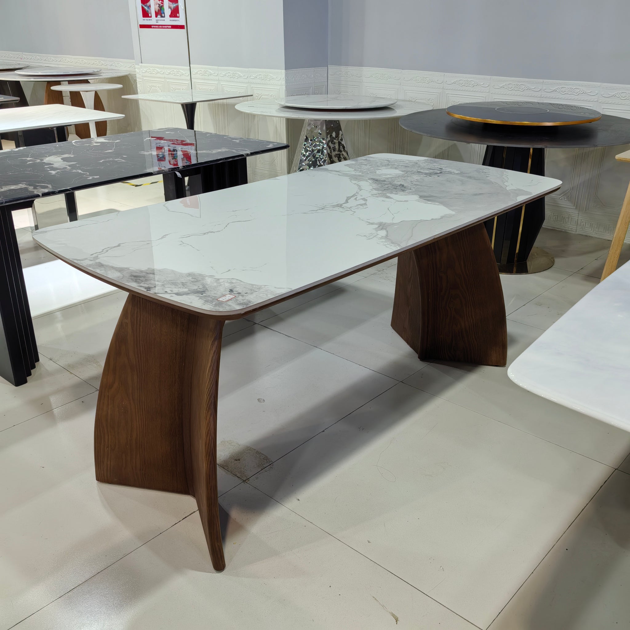 Dining Table Sintered Stone Wood Veneer LKD101DTHX | LEUKHOME