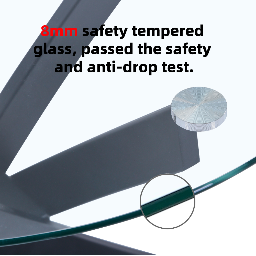 3、Secure:The dining table top is Tempered glass which belongs to safety glass. It will keep your family safe