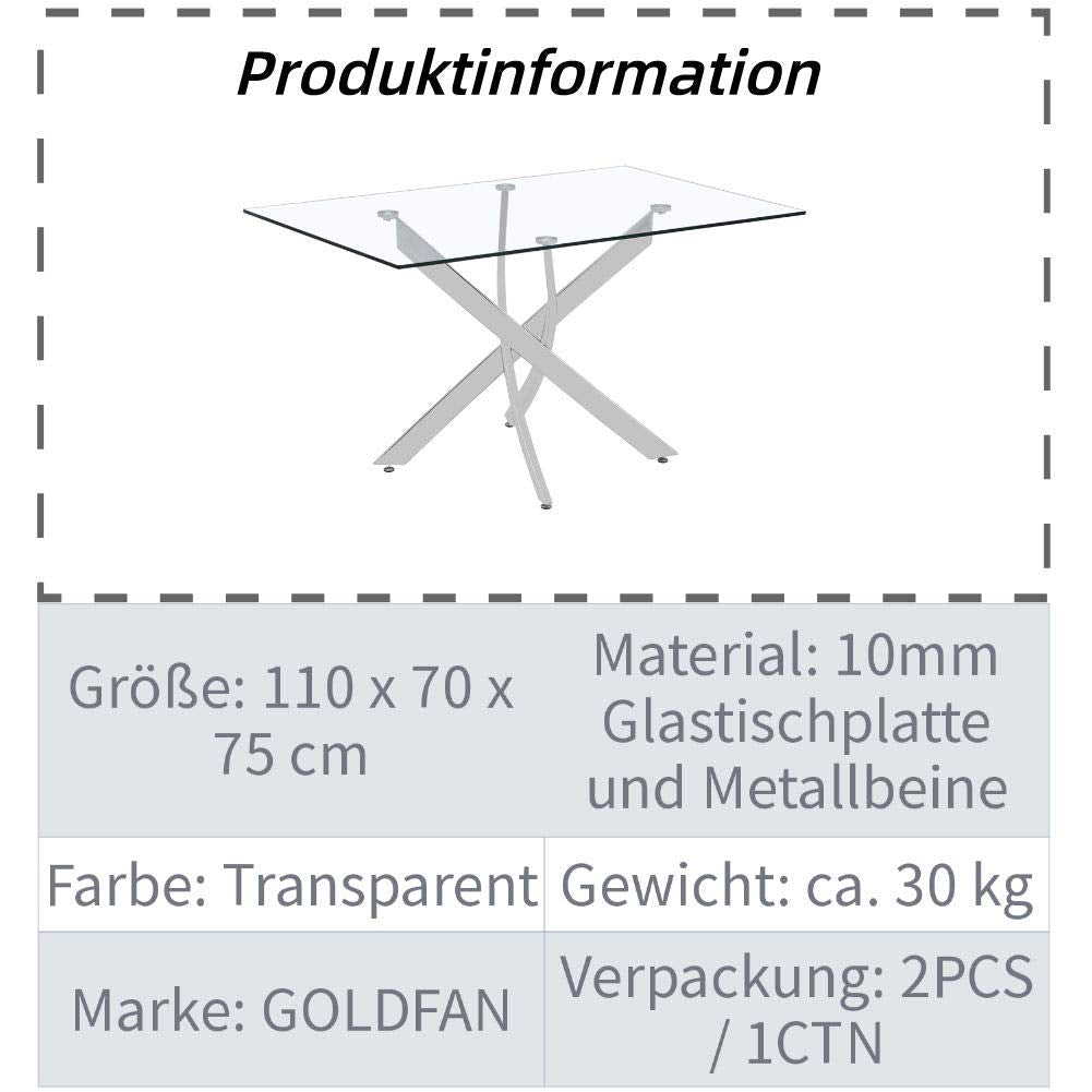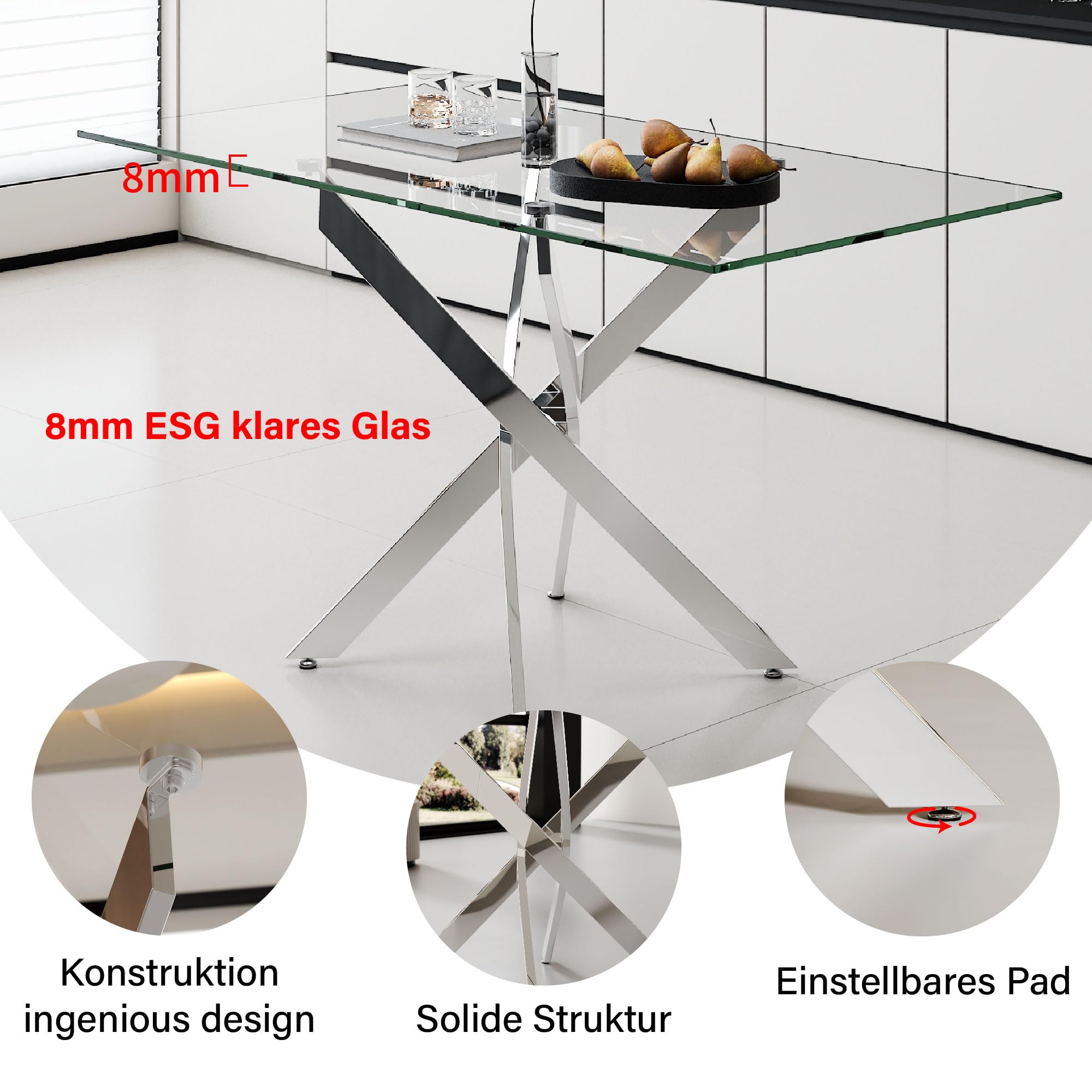 Einzigartiges Design: Die Kombination aus transparentem Glas und silberne tischbeine bietet verschiedene Stile. An den Tischbeinen befinden sich rutschfeste Polster, die den Tisch stabil machen können, ohne zu verrutschen.