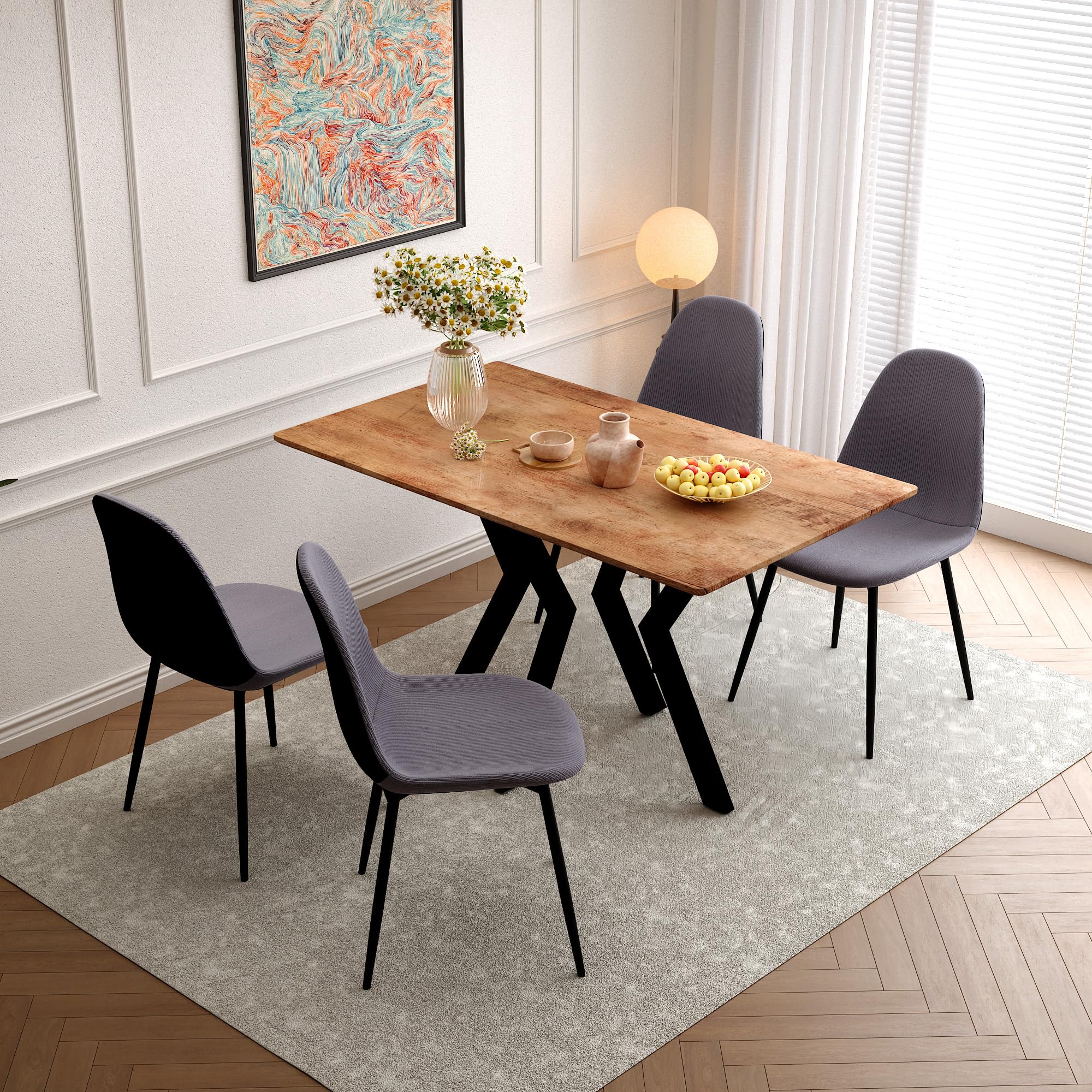 【Moderner Esstisch Holz】: Dieser elegante Esstisch holz aus hochwertigem 18mm MDF with 3D paper veneer und stabilen Metallbeinen verleiht Ihrer Küche oder Esszimmer einen zeitgemäßen Look. Ideal für Frühstück, Familienessen oder Home-Office