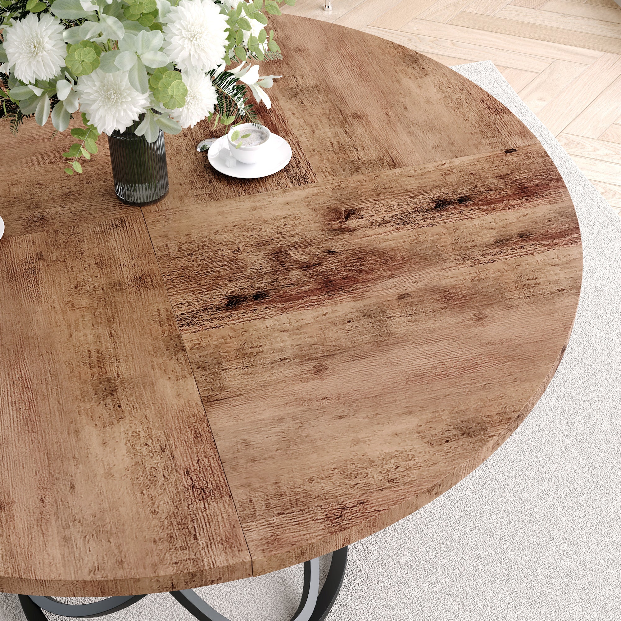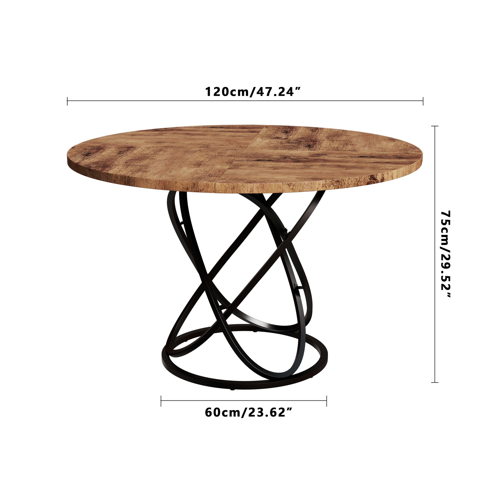 Table Ronde en Bois Salle à Manger 120 cm, Base en Métal Noir, Grande Tables Manger Style Rétro (Marron) AWS2051FR | LEUKHOUSE