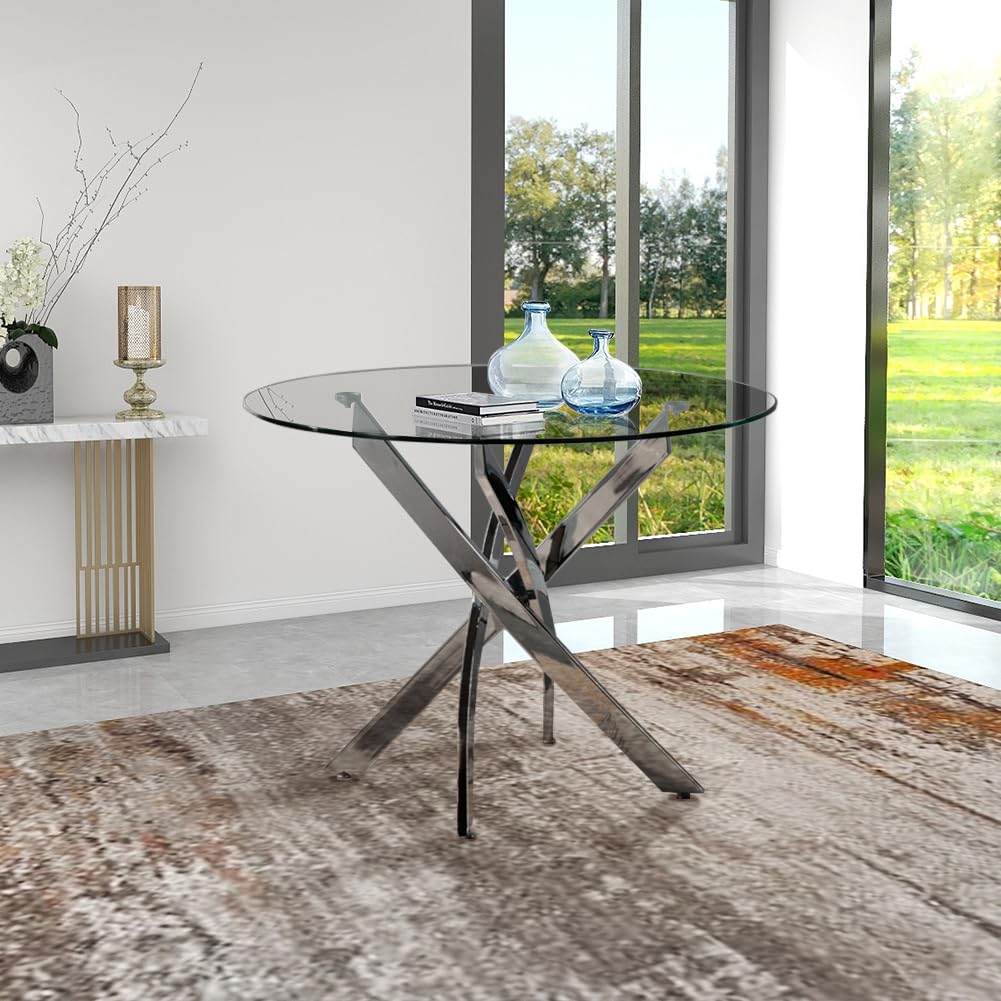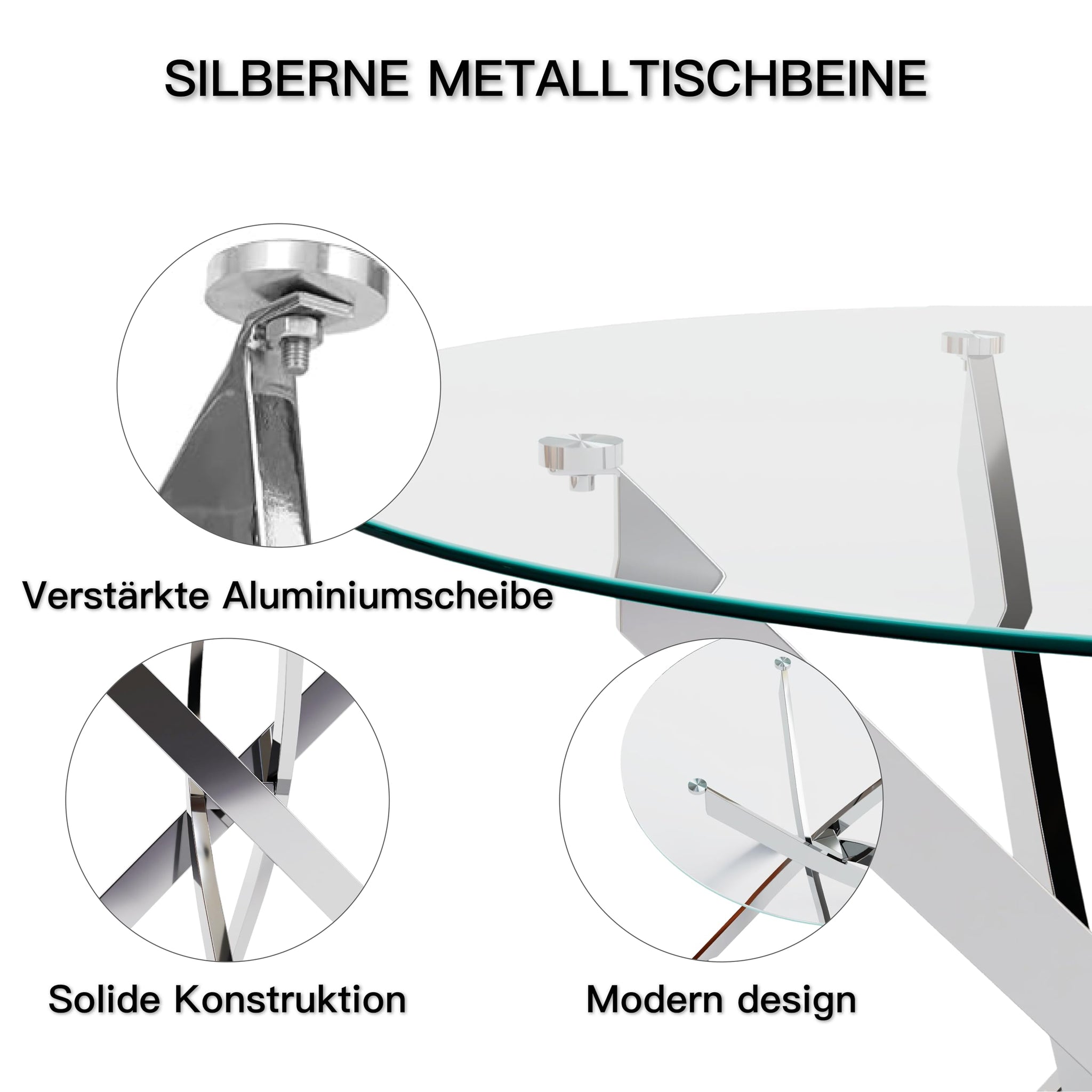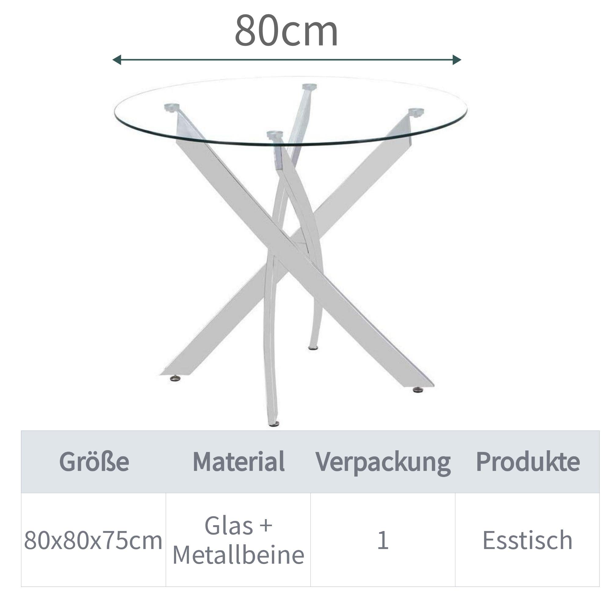 Runder Esstisch Glas Moderner Küchentisch Runder Glastisch Esszimmertische für Esszimmer Wohnzimmer Küche, Silber 80cm DE | LEUKHOUSE
