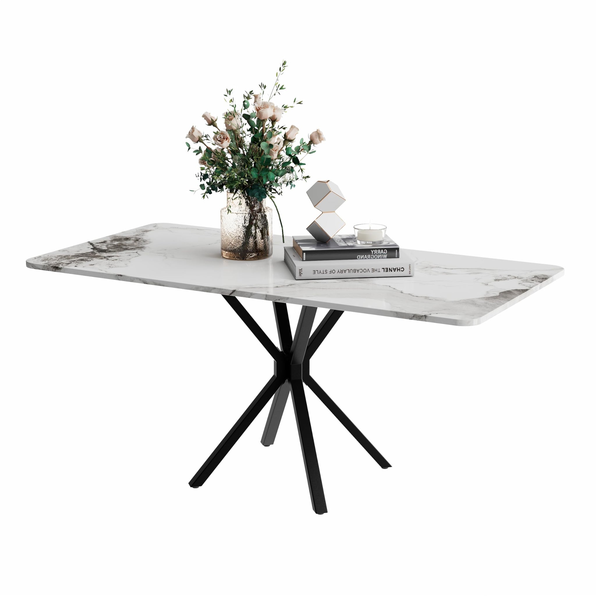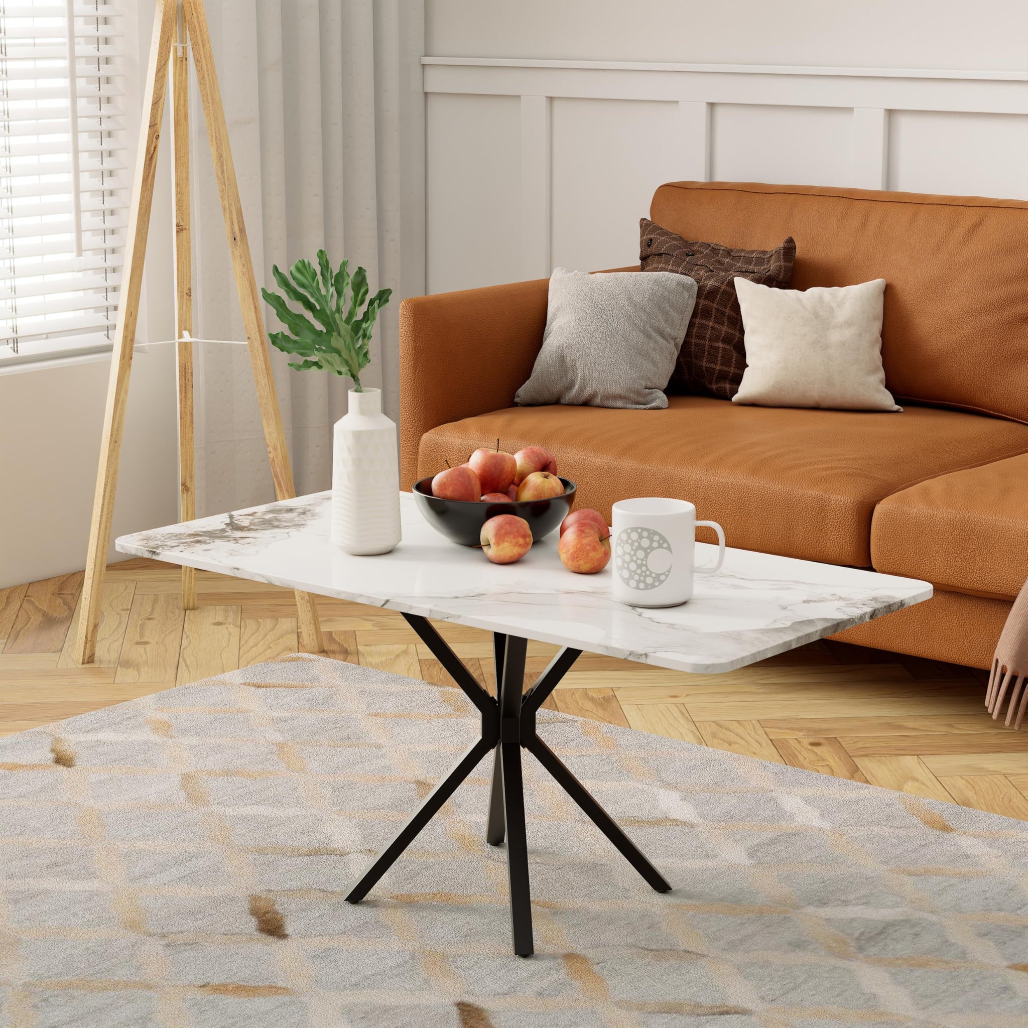 Couchtisch Weiß Wohnzimmertisch Marmor im Industriestil, Rechteckiger Sofatisch, Kaffetisch, TV Tische, für Wohnzimmer, Schlafzimmer, 100 x 50 x 45cm DE | LEUKHOUSE