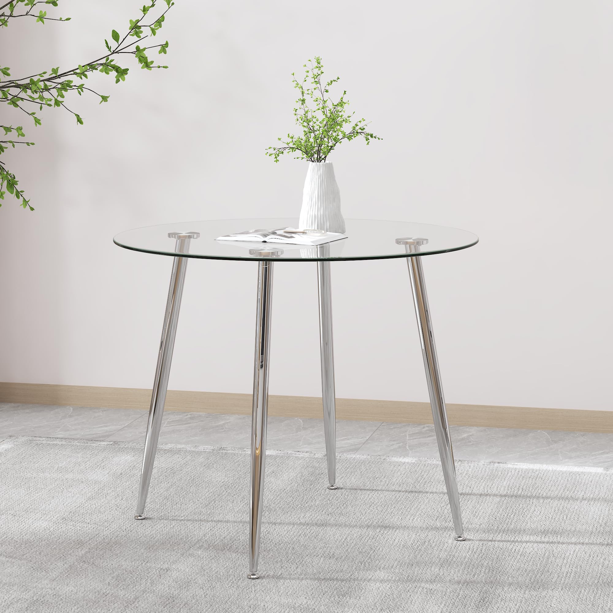 Glas Esstisch Esszimmertisch Küchentisch Glas Moderner Stil Runder Tisch für Wohnzimmer Büro Küche Silber DE | LEUKHOUSE