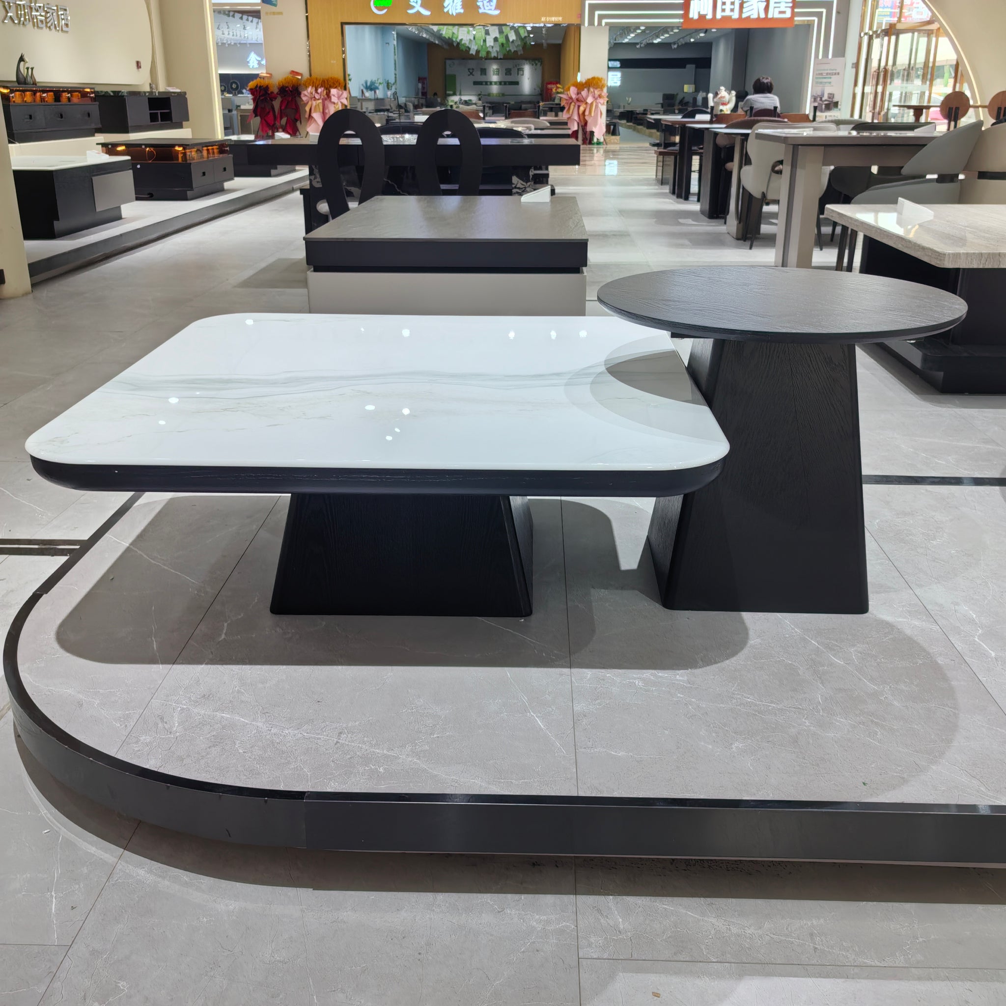 Coffee Table Artificial Stone Wood Veneer‌ LKL054CTAYG | LEUKHOME