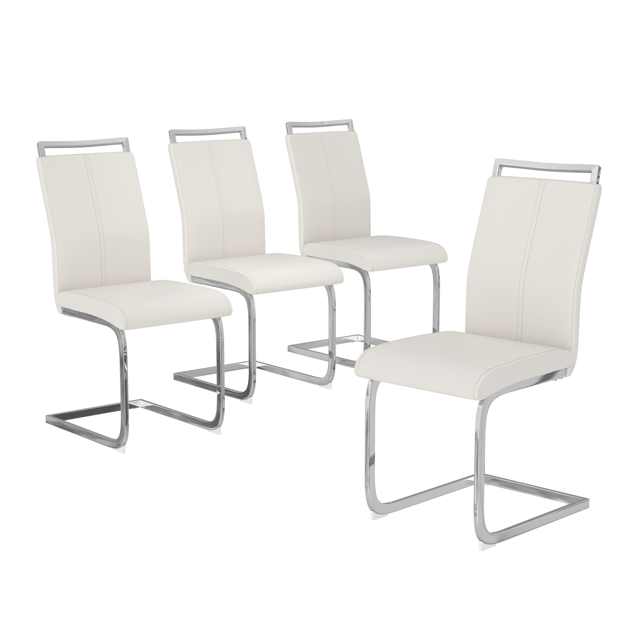 Lot de 4 Chaises de Salle à Manger, Design Cantilever, Structure Chrome, 98 cm x 43 cm (4, Blanche) AWS2661FR | LEUKHOUSE