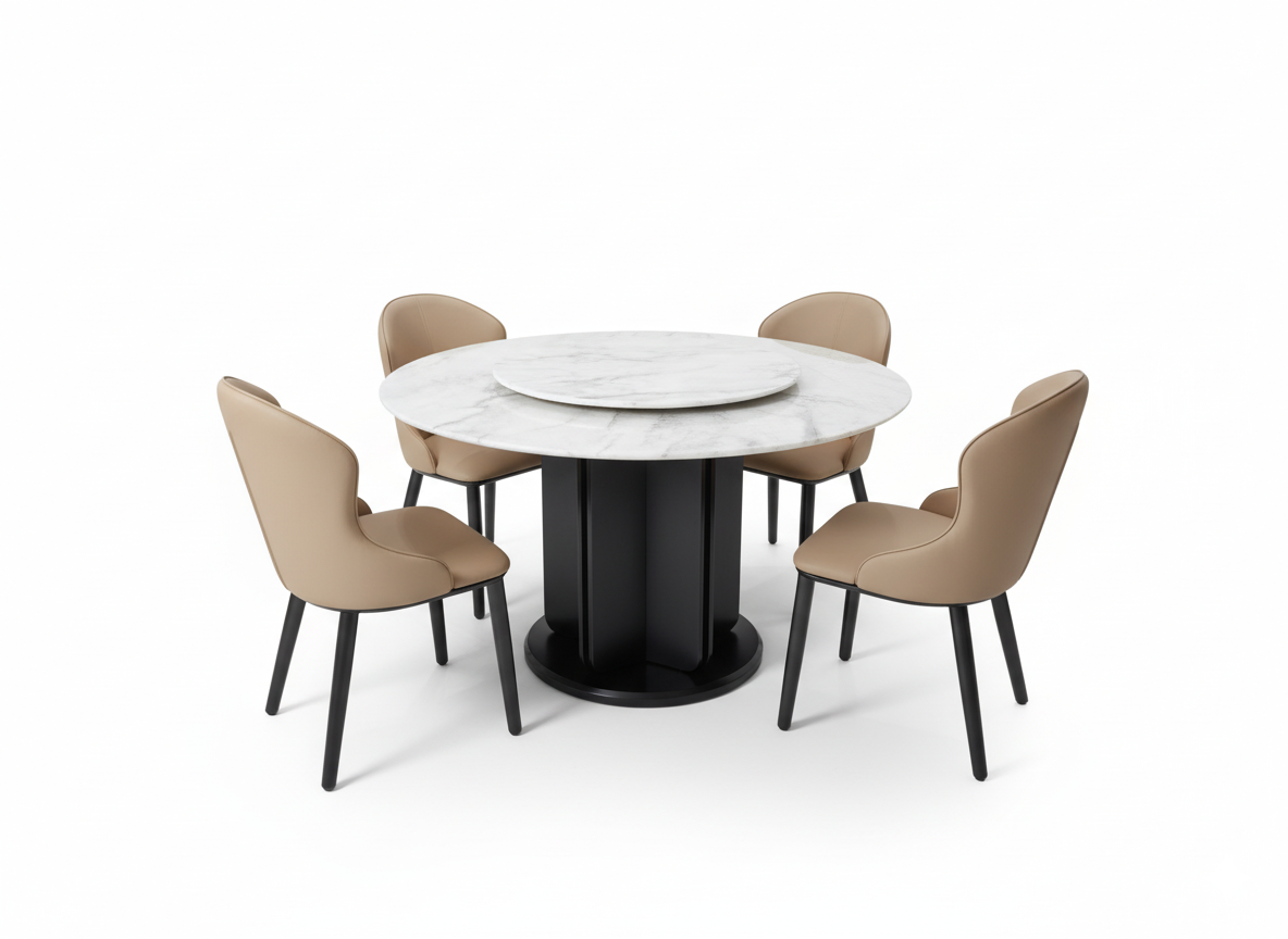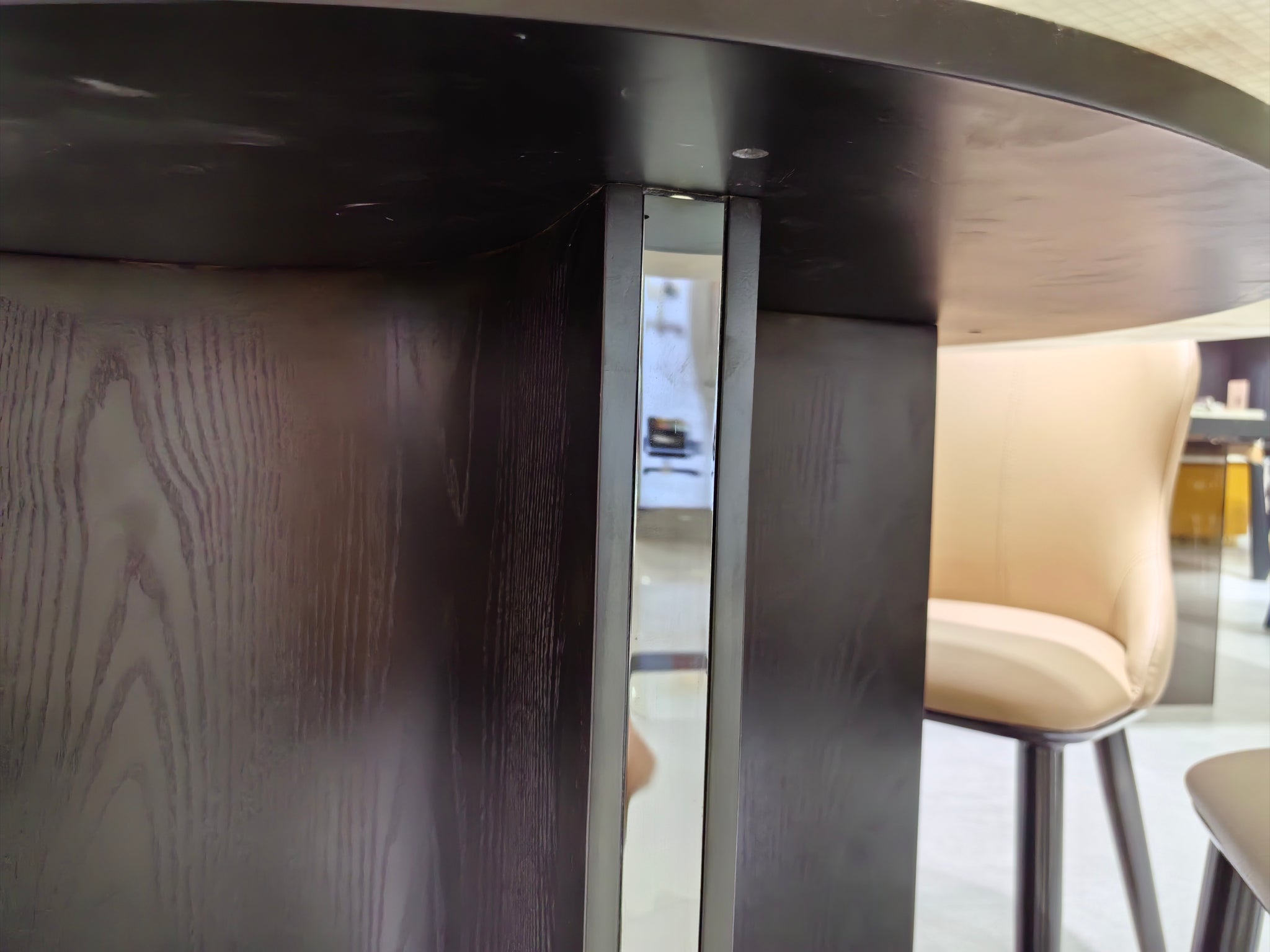 Dining Table Sintered Stone Wood Veneer Stainless Steel LKD089DTDSBL | LEUKHOME