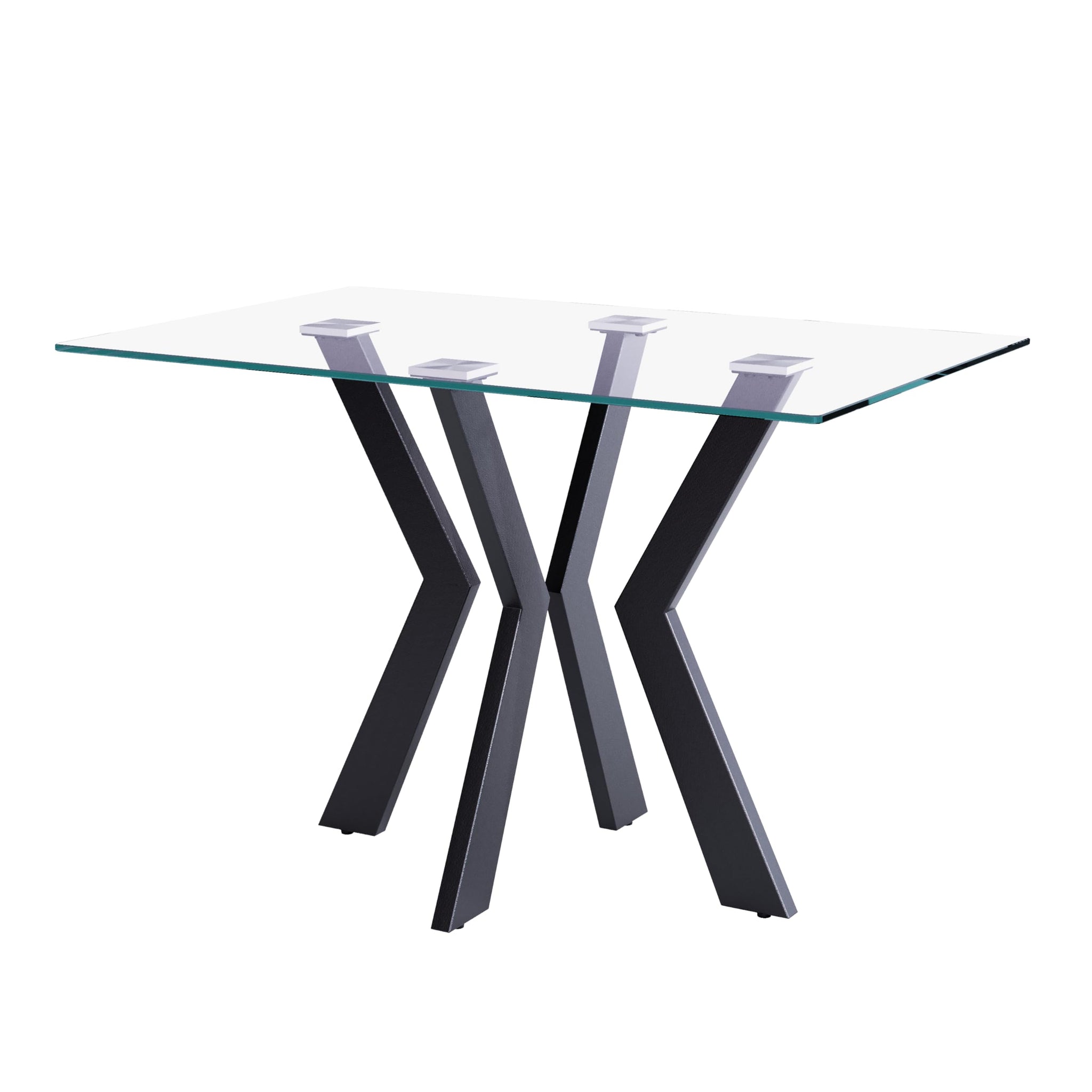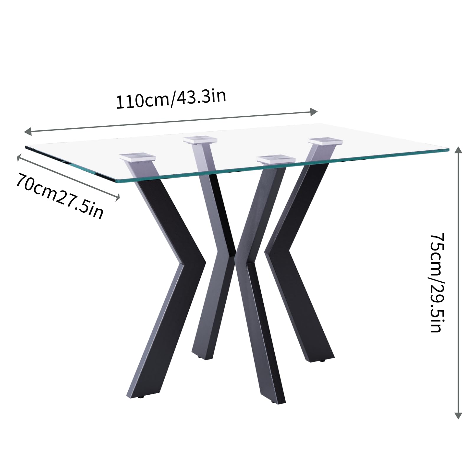 Glas Esstisch Rechteck Küchentisch mit Schwarzen Metallbeinen Moderner Industrieller Esstisch 110cm DE | LEUKHOUSE