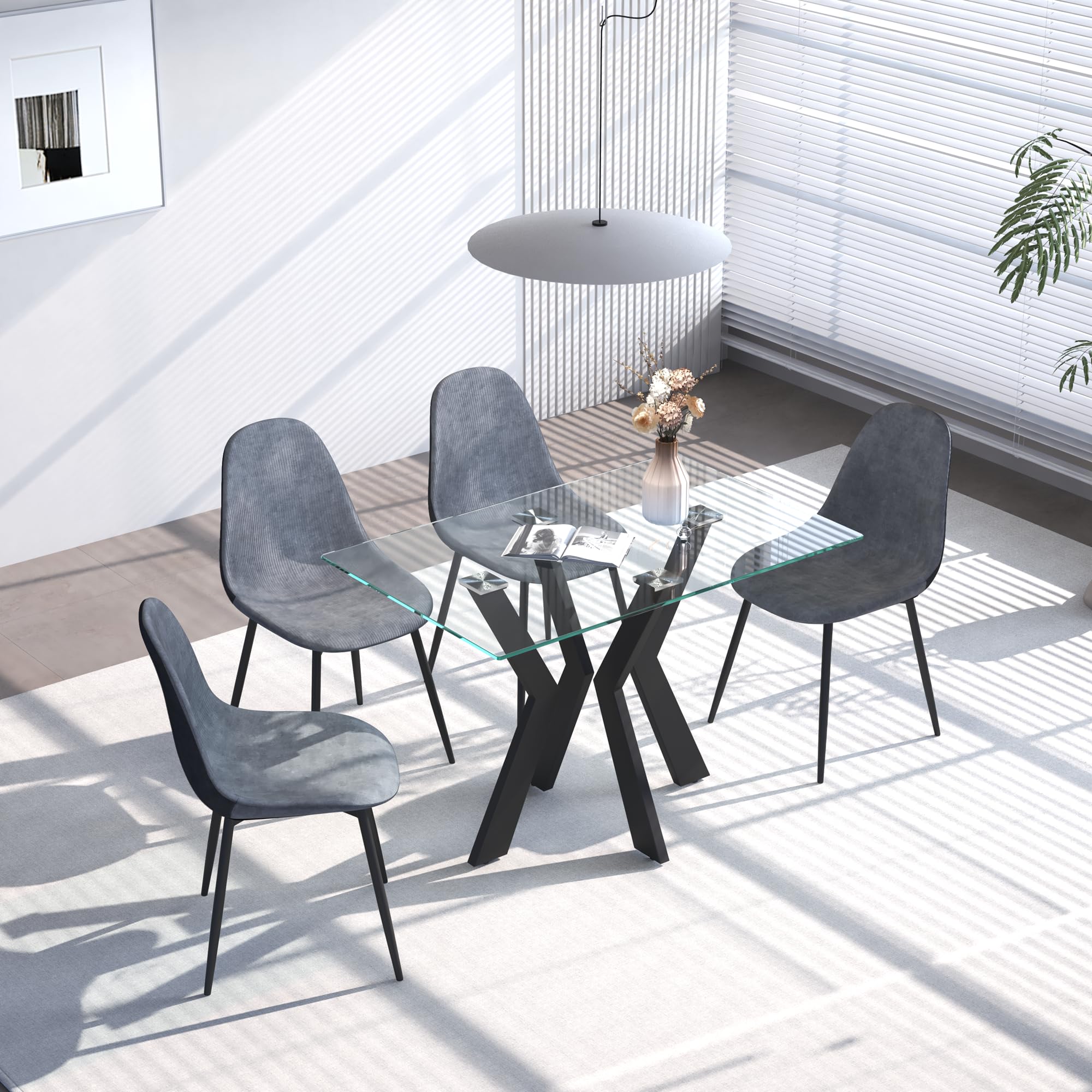 1.MODERNES AUSSEHEN: Dieser Esstisch besteht aus hochwertigem gehärtetem Glas, schwarzen Metallbeinen und einem neuen Design, das im Wohn- oder Esszimmer zum Blickfang wird.