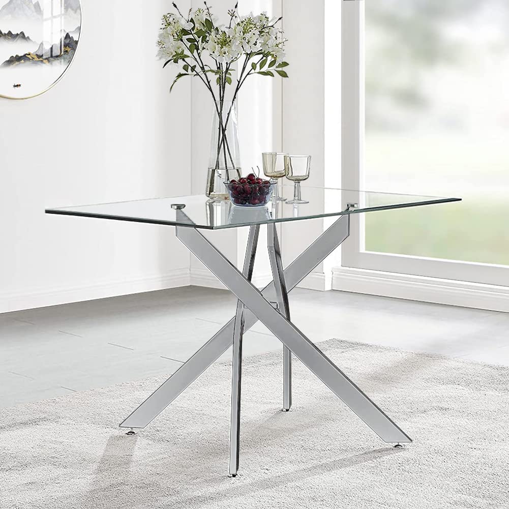 2、Silver Table Material: The 8mm thick toughened glass table top with silver chrome legs provides strong support.The non-slip pads on the legs also make you very stable and less wobbly when using this table