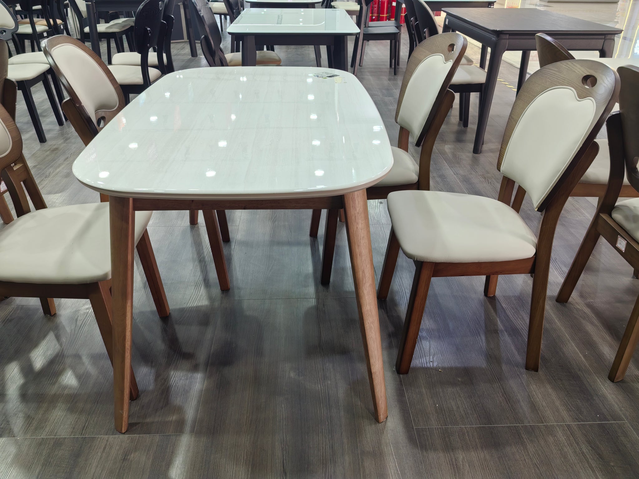 Dining Table Artificial Stone Solid Wood LKD023DTYS | LEUKHOME