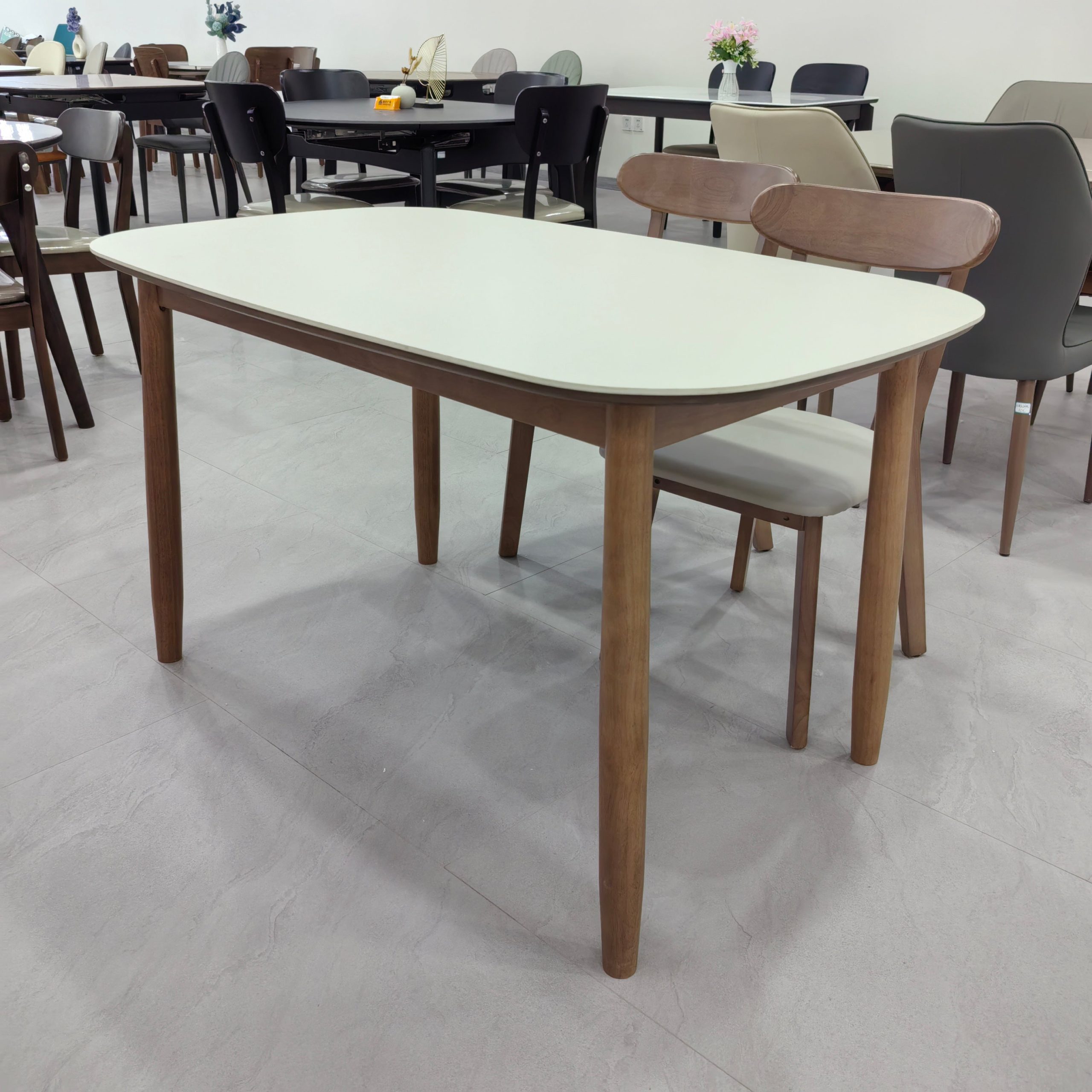 The LKD011DTXYD dining table launched by LEUKHOME is specially customized for small families and is suitable for dining, living room and outdoor cafes and other scenarios. Light beige wear-resistant countertops are stain-resistant and scratch-resistant, and coffee and oil stains are cleaned as soon as you wipe them. They are paired with natural texture and strong load-bearing solid wood table legs, making them durable. The oval contour is light and not bulky, and it can be easily accommodated in small apartments, which can meet the needs of 4-6 people.