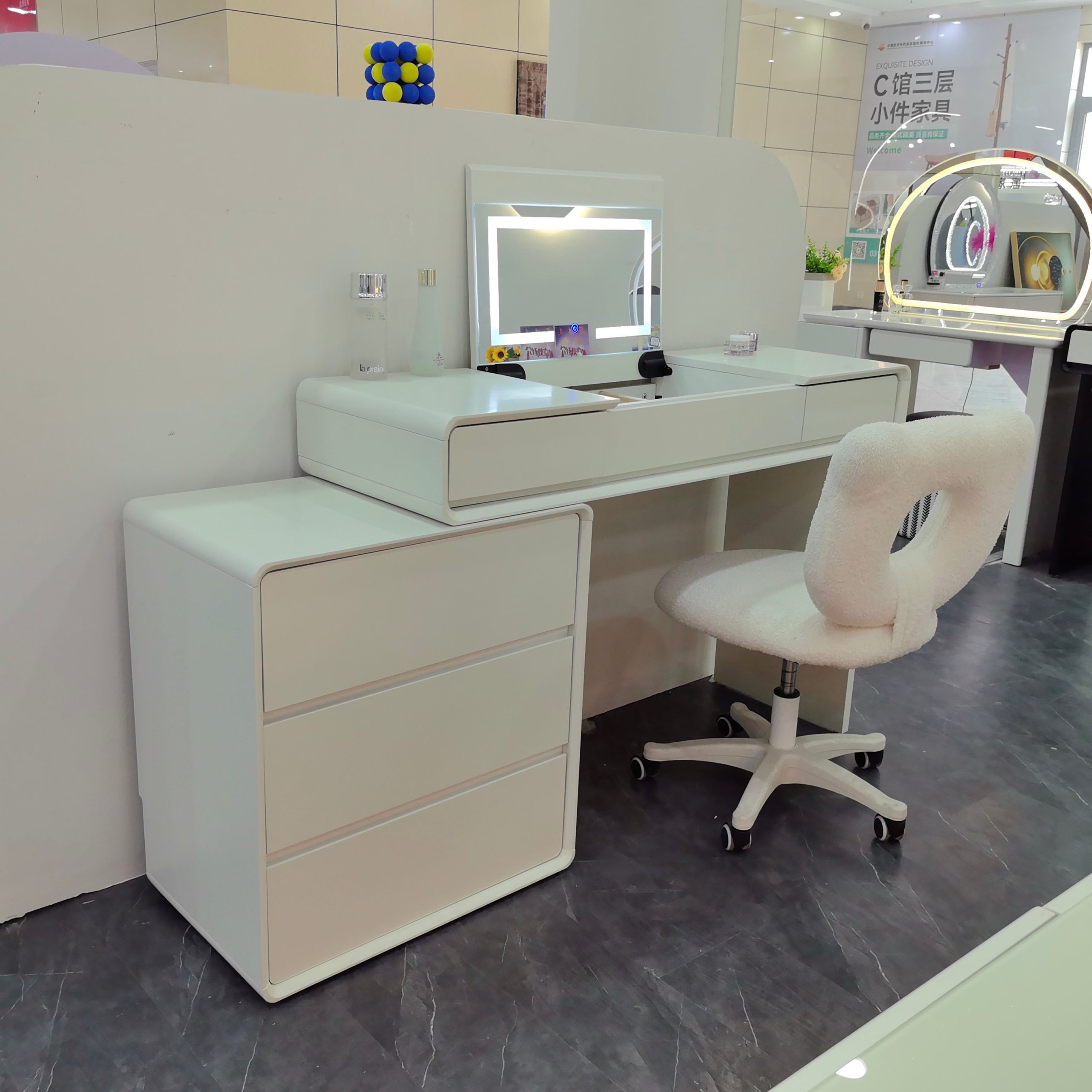 The LKB012DSSQM dressing table launched by LEUKHOME is designed for home bedrooms, powder room, cloakrooms and other scenes. Its lifting and hidden mirror can achieve “one-click switching” between makeup and office, and put it in a desk, so that the space in a small apartment is wasteful. ; The storage capacity of the three-pull side cabinet is 30% higher than that of the ordinary model ; The minimalist and pure white cabinet is adapted to the minimalist/wasabi wind, which visually doubles the space.