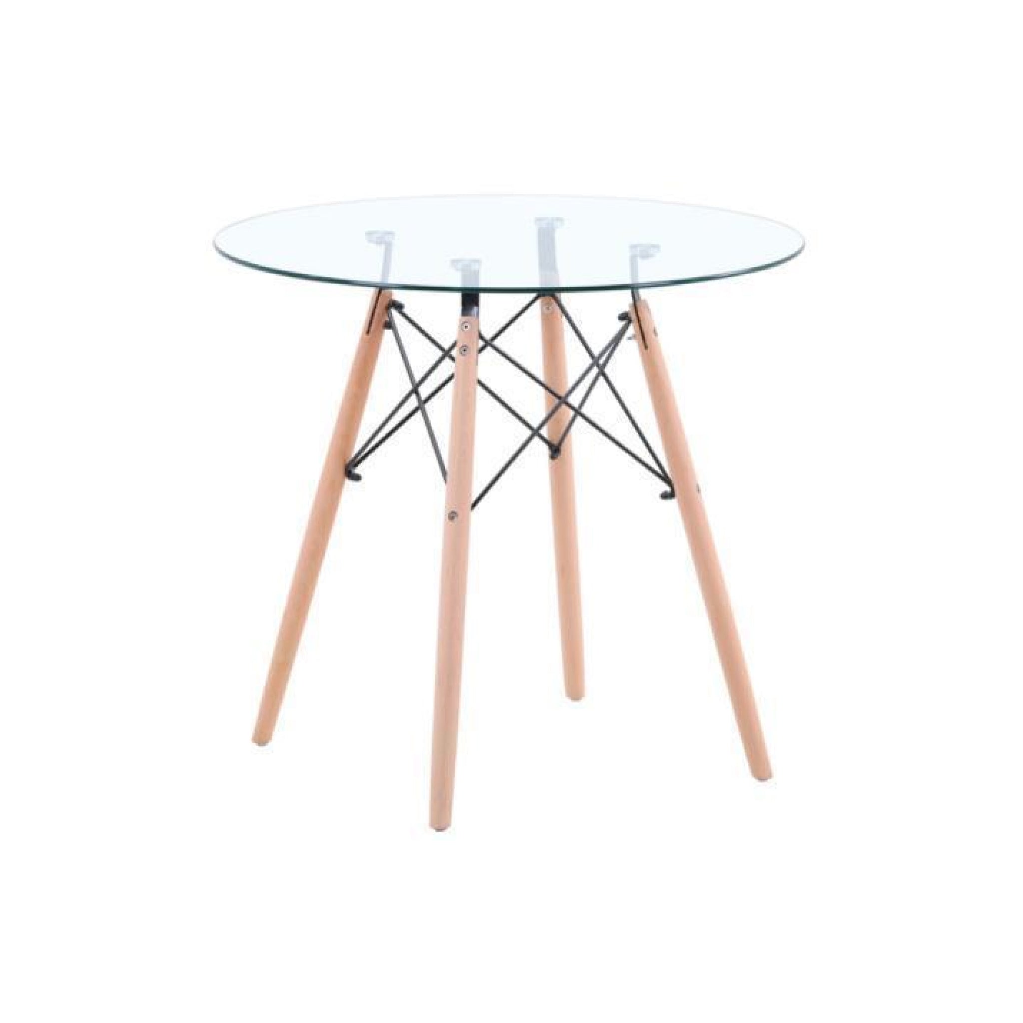 Dining Table Cross Round Glass LKD017DTAWS | FONDHOUSE