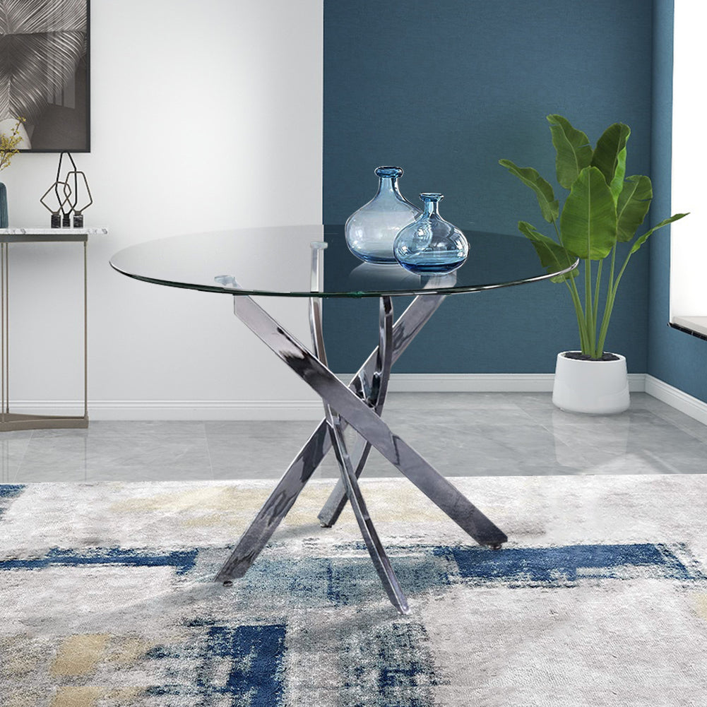 2、Round Dining Table: clear tempered glass dining table with chrome leg
