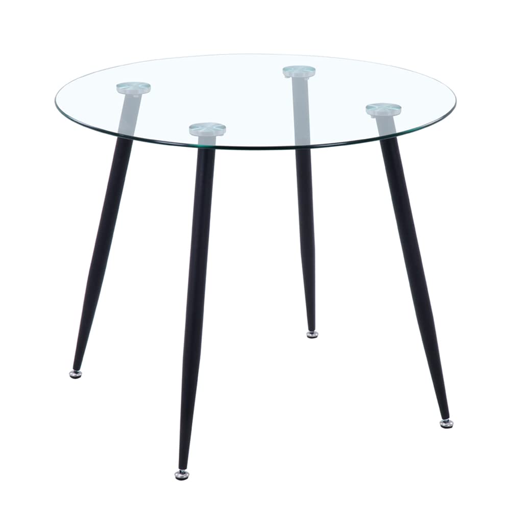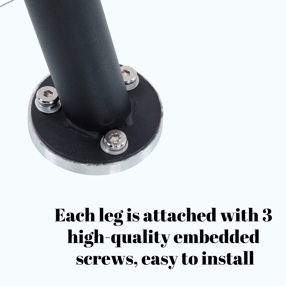 4、Strong Support: The round glass table top is supported by four black powder coated legs, each of which is held firmly in place by 3 screws, making the table stable and non-wobbly. The round table legs are equipped with non-slip pads to reduce noise and increase friction to prevent easy movement when in use