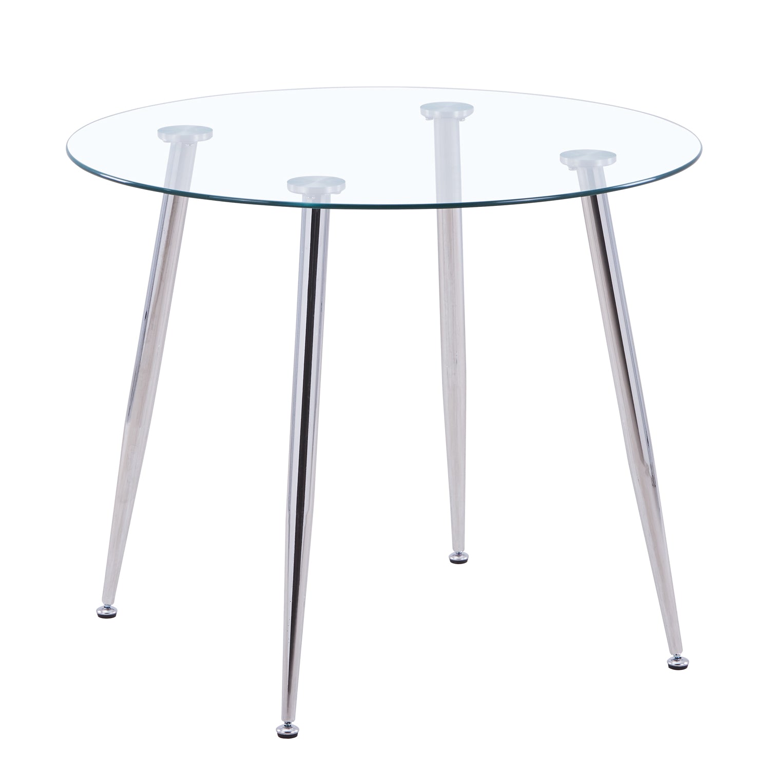 Round Dining Table 90x90cm Glass/Silver AWS062UK | LEUKHOUSE