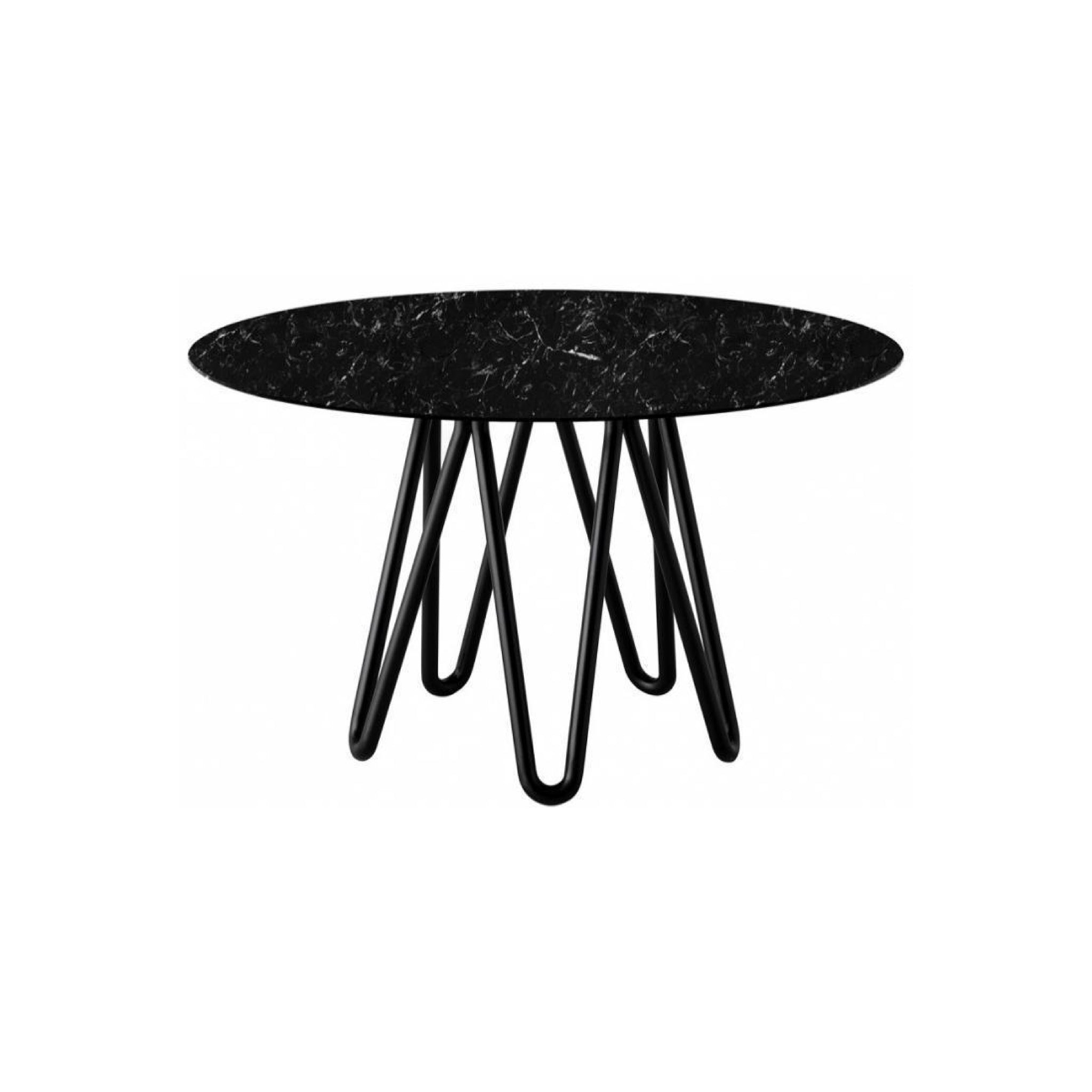 Обеденный стол из черного круглого стекла LKD192DTAWS | LEUKHOME
