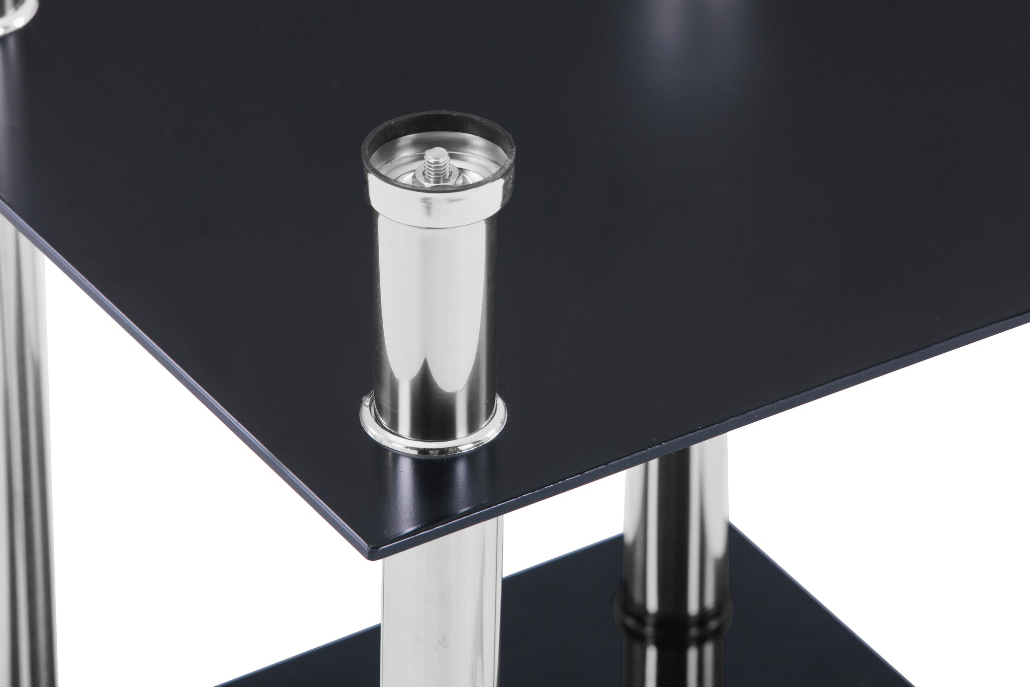 2、Safety and Strong: 6 mm Tempered glass with polished round corner. Four bright stainless chrome-like steel support up-to 20 kg.